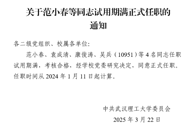 校党组字〔2025〕5号 关于范小春等同志试用期满正式任职的通知