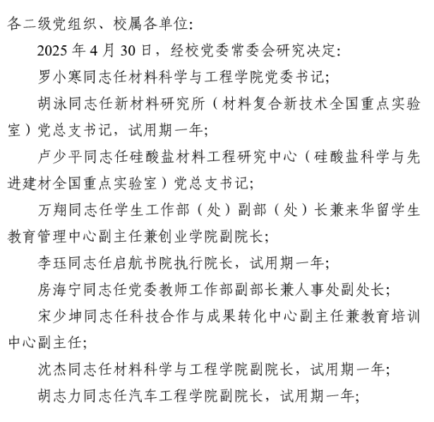 校党组字〔2025〕7号 关于罗小寒等同志职务任免的通知