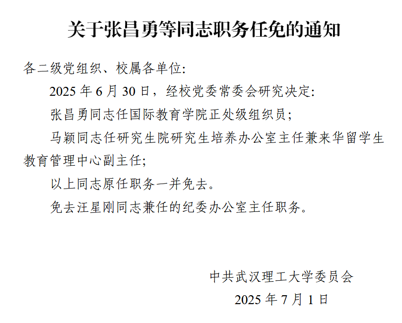 校党组字〔2025〕15号 关于张昌勇等同志职务任免的通知