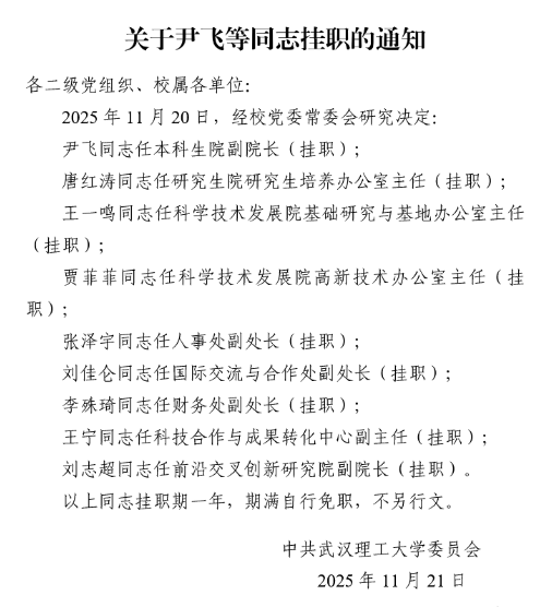 校党组字〔2025〕26号 关于尹飞等同志挂职的通知