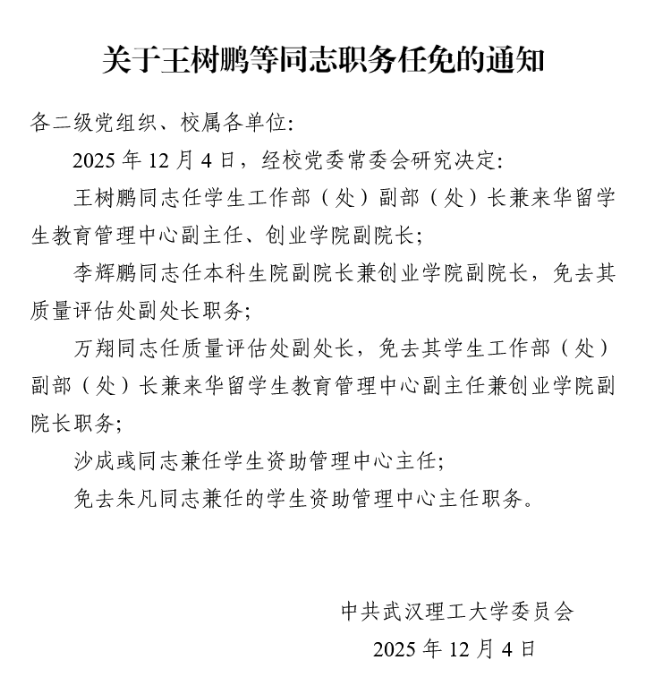 校党组字〔2025〕30号 关于王树鹏等同志职务任免的通知