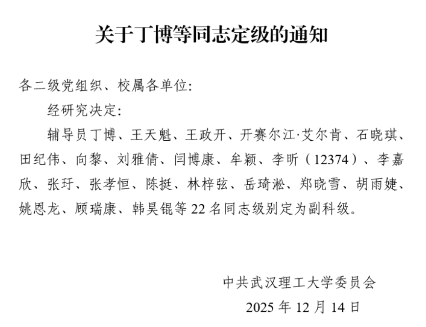校党组字〔2025〕40号 关于丁博等同志定级的通知